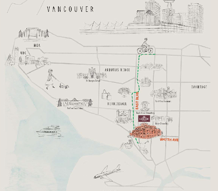 Kerrisdale is primarily a residential area, and has many long-time residents. Its residential streets are lined with sweeping, grand old trees. Kerrisdale Village is the main shopping area, and one of the first to introduce specially designed street furniture to beautify the main shopping streets. Kerrisdale is in the south-western section of the city, sloping down to the Fraser River.