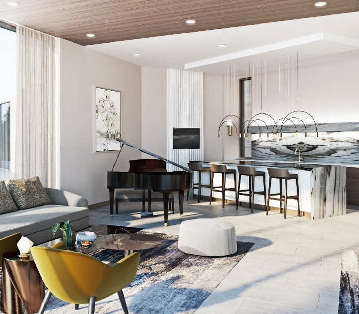 Extraordinary landmark living starts with a storied arrival. A winding porte cochere driveway brings you to the sleek Lobby Lounge, styled in rich walnut, metallic accents and polished graphite, providing an upscale welcome.