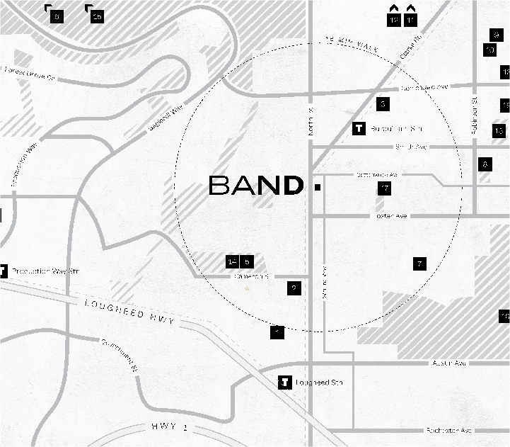 On a rising skyline of modern forms, Band is a beacon. Townline presents a landmark 45-storey tower that commands attention in vibrant West Coquitlam. Bold architecture uses sharp geometry and contrasting bands of light and dark to create a new design icon. Resort-inspired amenities offer an effortless balance of active living and tranquil stillness.